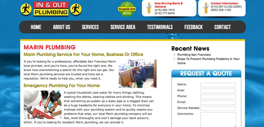 “In & Out Plumbing” has a great example of how to locally optimize and use a landing page.