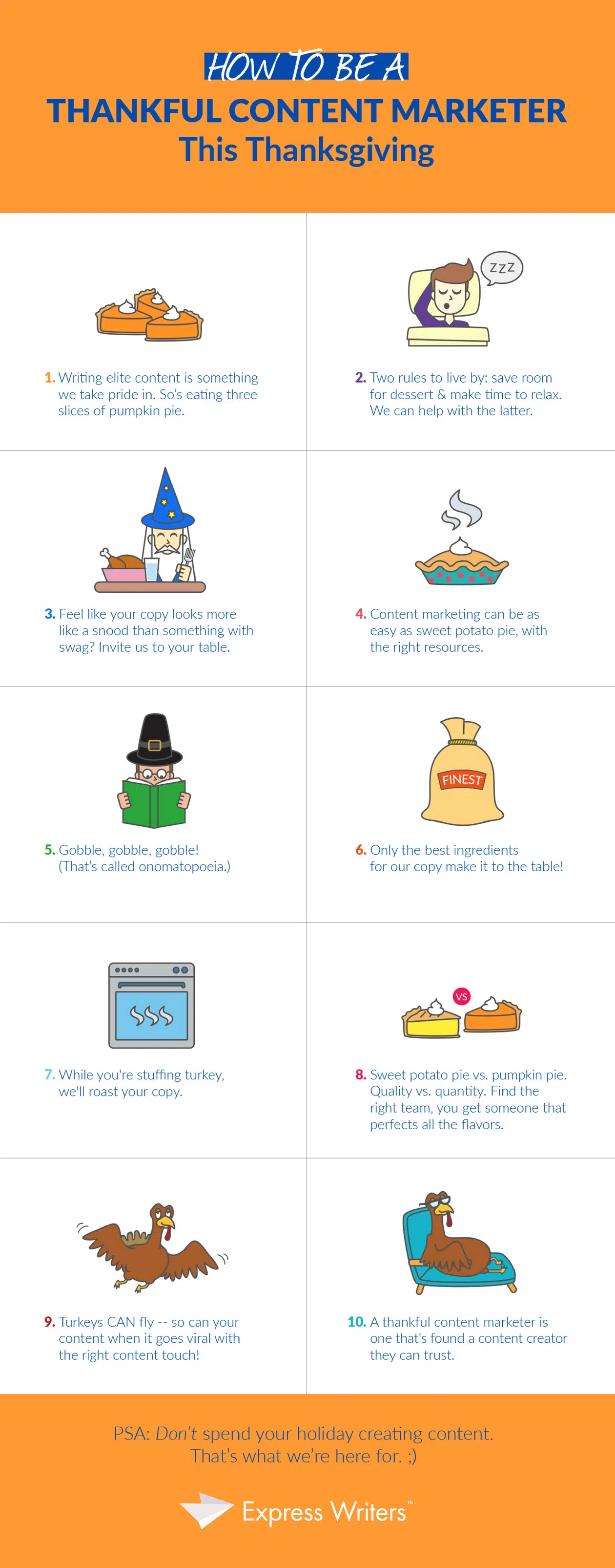 1. Writing elite content is something we take pride in. So’s eating three slices of pumpkin pie.